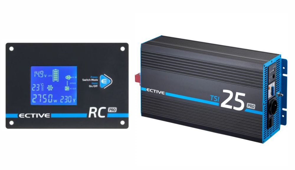 Reiner Sinus Wechselrichter Ective TSI Pro 2500 Watt mit Netzvorrangschaltung und Belegung der gesamten Steckdosen auf 230V
